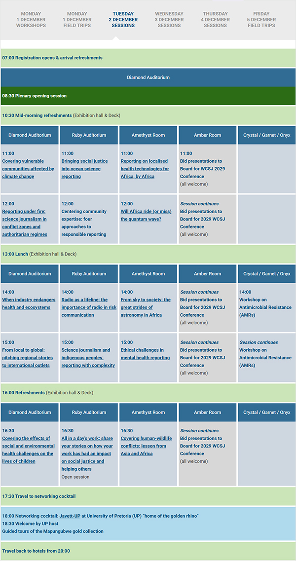 Have you explored the WCSJ2025 programme yet? It’s a vibrant mix of sessions, designed not only to inspire but also to help you sharpen your skills as a science journalist. Here’s a taste of what’s in store: